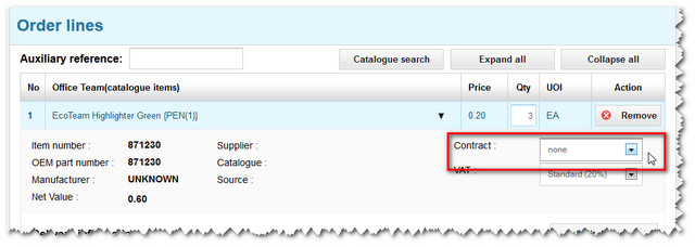 While checking out, it's possible to link individual items with specific supplier contracts.