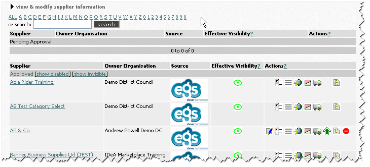 To edit a supplier's set-up preferences, click on the pencil icon.