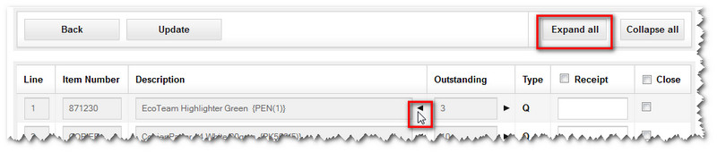 Note: If all the items on a line have been received, then you can select the Close tick-box at the end of the row. This lets you close this line in the order at the same time as receipting the order - making this a one-step process.