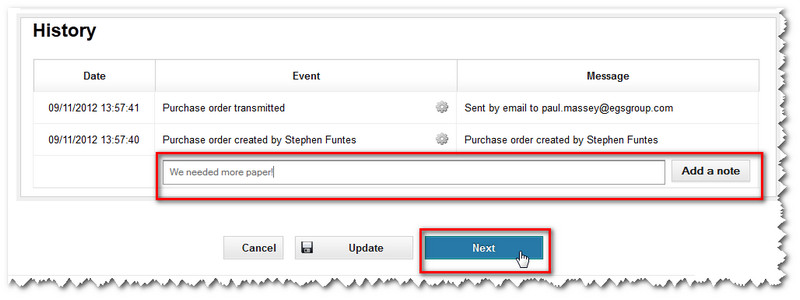Once any changes have been made to your order, scroll down the page. You may wish to add a note - before you click the Next button.